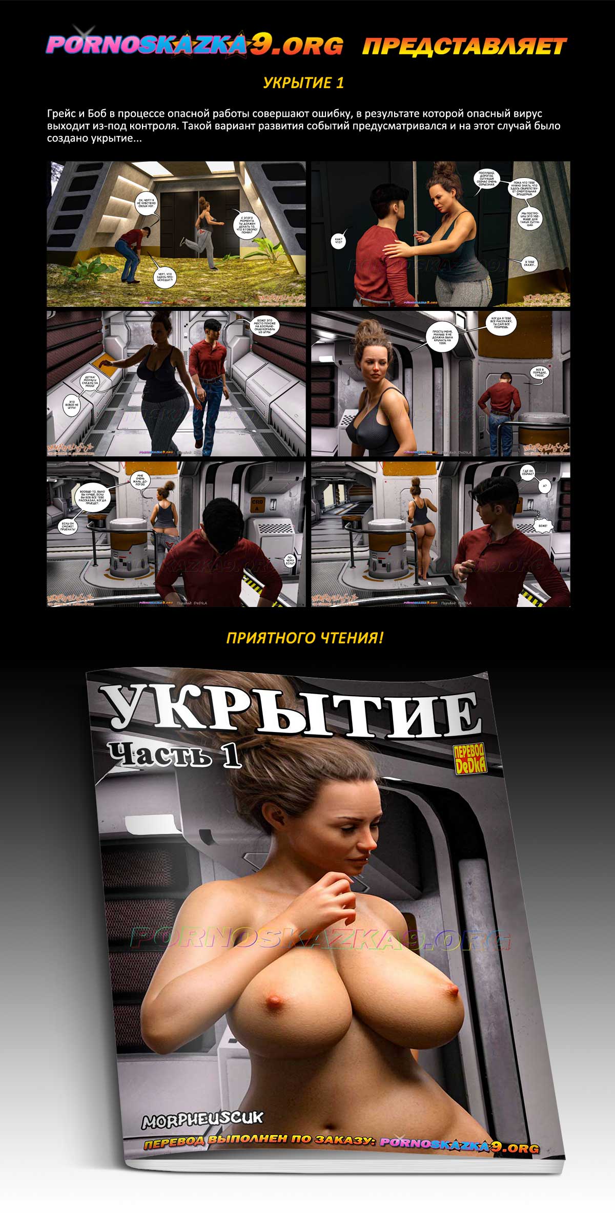 Порно комикс «Укрытие. Часть 1.» Грейс и Боб в процессе опасной работы совершают ошибку, в результате которой опасный вирус выходит из-под контроля. Такой вариант развития событий предусматривался и на этот случай было создано укрытие…